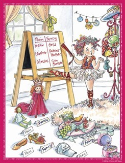I was relieved to find that subsequent Fancy Nancy books have significantly different images on the cover. Nancy is dressed less like a burlesque bombshell and more like an eccentric little girl. Nevertheless, that first cover image makes a lasting, and disturbing, impression.