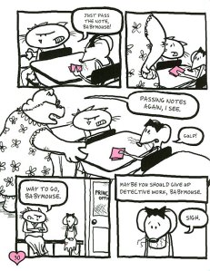 Eventually Babymouse gets to peek into the popular girl lifestyle, and she realizes that it’s actually really boring. Sleepovers with Felicia Furrypants and her friends are not as exciting as she imagined – all they do is sit around, gossip, and paint their nails. Babymouse tells off the popular girls and realizes that she actually has a pretty great life with her loving family and her loyal best friend. It’s a small revelation, but it’s a nice one.
