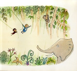 Review: Everything about this book screams “cute”. My partner saw it on our coffee table, and as he picked it up and read it, he said, “Awwwwwww! That’s lovely.” And that pretty much sums up Me…Jane. It is utterly lovely. It is so sweet in it’s simplicity that you cannot help but smile while reading. But there are lots of charming, adorable picture books out there – so what sets Me…Jane apart? It is the unity of the design, and the true story behind it, that make this book stand out.