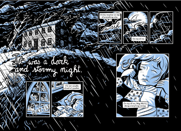 A Wrinkle in Time (the graphic novel) adapted and illustrated by Hope Larson from the novel by Madeleine L’Engle. Margaret Ferguson Books, 2012. Currently Available.